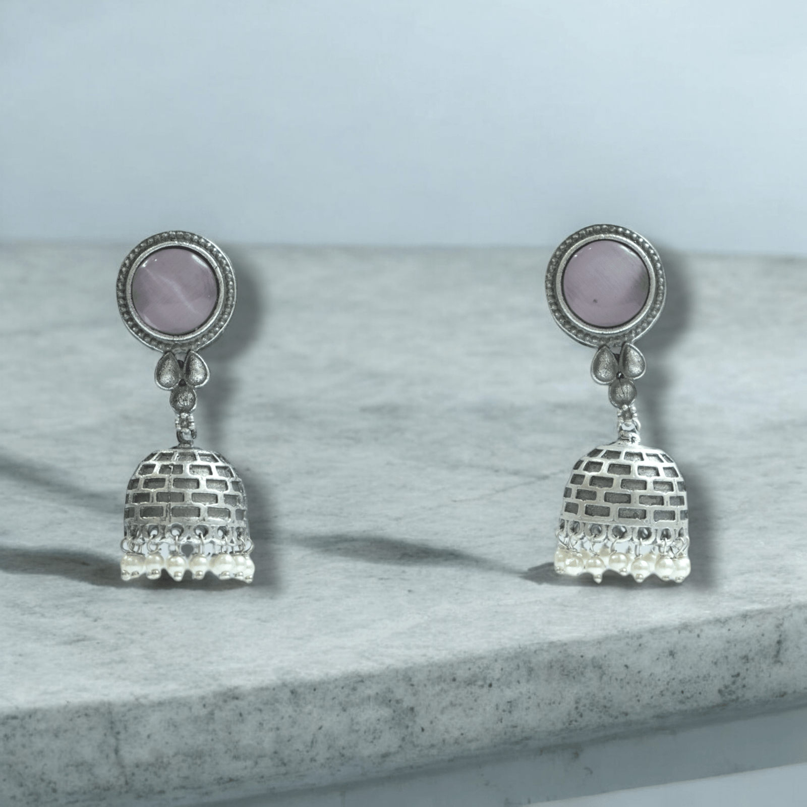 Pearl Designer Jhumkas with monalisa stone